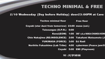 【地方都市 埼玉県大宮市に純度120% TECHNO MUSICを筆頭にただひたすら音楽で遊ぶ事に向けた至高のDance Music PARTY】