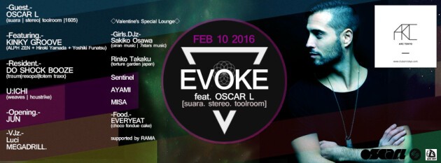 TOTEM TRAXX主宰のDO SHOCK BOOZEとWEAVES主宰のU:ICHI。東京のダンスミュージックシーンを長く牽引し続けた2人がレジデントを務めるパーティ"EVOKE"。今回ゲストとして登場するのは、Carl CoxやMark Knight、Coyuといった名立たるビッグネームのサポートを受けスペインの名門SUARAやStereo Productions、1605からヒット曲を連発するOSCAR Lだ。2015年Beatport Tech House Best 5 Producerに輝き、世界中が注目している彼の4年ぶりとなる来日を待ち望んだファンは多いだろう。またALPH ZEN、Hiroki Yamada、Yoshiki FunatsuからなるユニットKINKY GROOVEやJUNの出演が決定。ラウンジフロアにもバレンタインらしく実力派の女性DJ陣が妖艶な音で魅了する。今回が主動としては初開催となるEVOKE。凄まじい一夜になりそうだ。 TEXT by RAMA