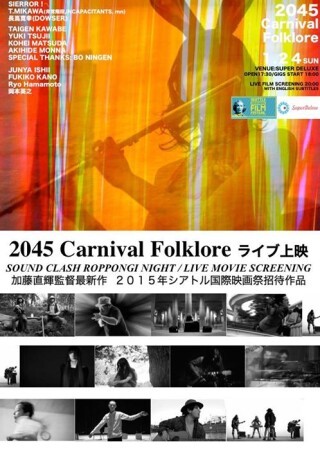 2015 年北米最大規模のシアトル国際映画祭にてワールドフレミアを飾った加藤直輝監督の最新作 『2045 Carnival Folklore』のライブ上映を中心としたサウンド・パフォーマンス・イベントを開催いたします。凱旋上映となる今回は、新春フルテンスクリーニングナイト!