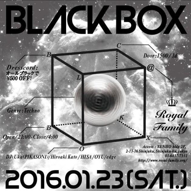 1/23(土) ユニークなカルチャーを発信し続けている注目エリア、新宿2丁目にて新たなパーティーが発動! その名も【 BLACK BOX 】Technoを中心としたDJ陣が織り成す音のBOX、その内部はまだ未解明…
