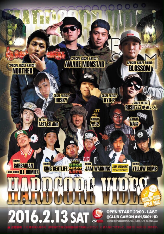 【HARDCORE VIBES】2/13(土)☆SPECIAL GUESTにAWAKE MONSTAR、NORTHER、BLOSSOMが登場☆☆レゲエアーティスト多数出演★★RUB A DUB OPEN MIC☆☆CLUB CAMONのLINE公式アカウント登録で割引特典あり★★