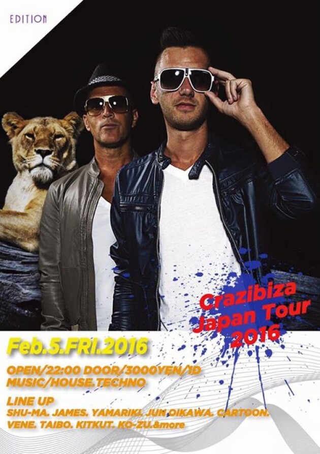 緊急来日!!!世界屈指のクリエイティブなデュオとして幅広く知られているCrazibizaがまさかの来日!!!2012年以降Defected, Ushuaia, Pacha, Ministry of Sound, Hed Kandiなどの主要レーベルより150タイトルを超えるリリースを続け、過去9度に渡りハウスチャートの1位を獲得するなど、2012年にはBeatportベストリミキサーを受賞するなどシーンのトップアーティストがJAPANツアーを敢行!!!今現在の世界基準のHOUSE MUSICを体感してほしい….