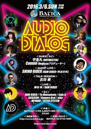 3/6恵比寿BATICAで開催AUDIO DIALOGに宇多丸(RHYMESTER)、SHIHO RIDER[RAM RIDER+南波志帆]出演決定!