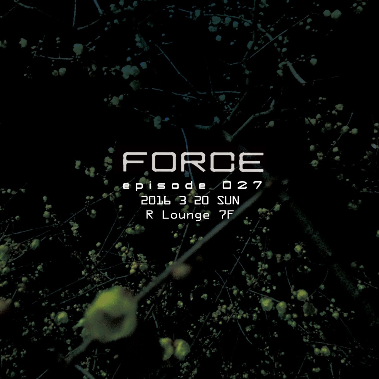 これまでに国内外のシーン最前線で活躍を続けるアーティストを招聘してきたFORCE。27度目の開催となる今回 episode 027には Semantica, Stroboscopic Artefacts, Informa などのレーベルからリリースを続ける ''HIRONORI TAKAHASHI’’ そしてJosh Winkが主宰するOvum Recordingsから先日トラックを発表したばかりの''Ryogo Yamamori’’がFORCEに初登場。現在そして今後のテクノシーンを担うアーティスト達に焦点を合わせ可能性と未来を探求する夜。