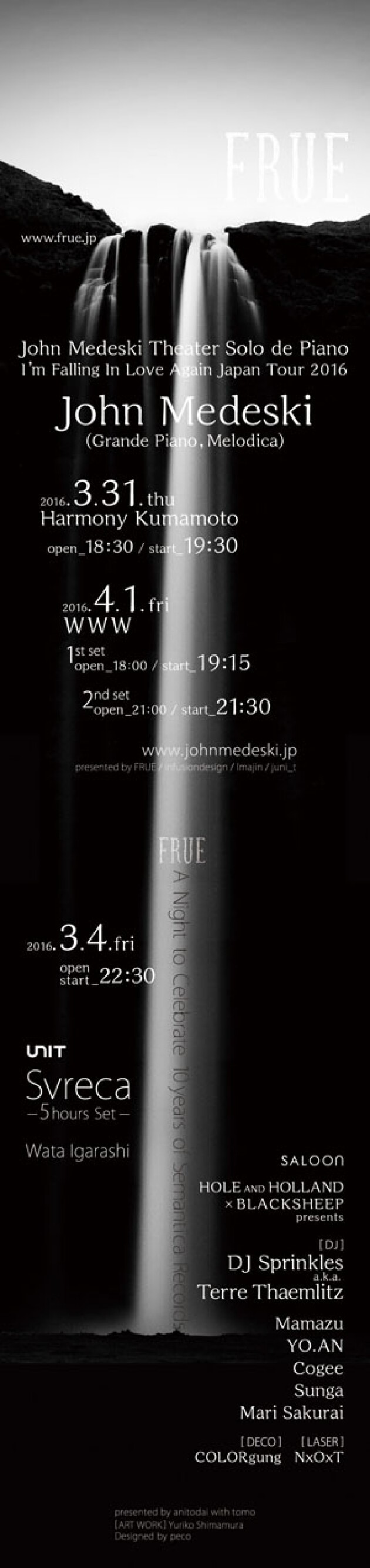 サポートするのは、深い音楽的な知識、かつ緻密で丁寧なトラックの作曲とパフォーマンスで、一躍注目されているWata Igarashiはじめ、階下のSALOONでは、美しくディープな世界観でカルト的なファンも多い鬼才・DJ Sprinkles aka Terre Thaemlitzをメインに据え、東京きってのドープなパーティクルー・Hole and HollandとBlack Sheepが濃く深い一夜を創り上げることでしょう。