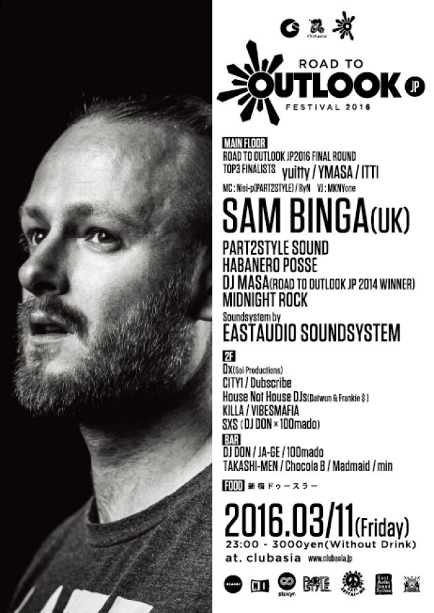 今回はビッグゲストにUKから≪SAM BINGA≫を迎え、本家”Outlook festival”でも常連、”Outlookfestival 2016 Japan Launch Party”レジデントの≪PART2STYLE SOUND≫の他、多数アクトが出演。