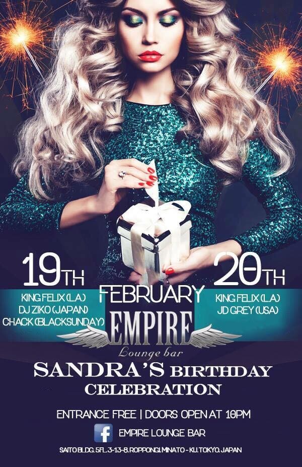 We invite you all to get together on 20th of February to be held in Empire Lounge bar from 10pm onwards for Sandra's birthday bash.