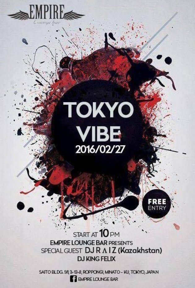 Join us this Saturday Febuary 25th 2016 for a great night of mixing from 2 fantastic Djs R Λ I Z and King Felix. Get down on Tokyo Vibe all night with Empire Lounge Bar. We have a fantastic sound system, great selection of drinks and sexy ladies dancing all night to your favoite beats.