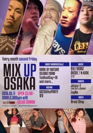 【MIX UP OSAKA】3/11(金)☆毎月第2金曜開催『MIX UP OSAKA』★★DANCE SHOWにDORK BY NATURE、ISLAND FORM、TooKoolGuy+AIが登場☆☆CLUB CAMONのLINE公式アカウント登録で割引特典あり★★