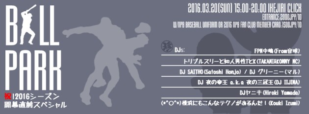 野球好きのあの懲りないDJ面々による野球と音楽のパーティー! 野球好きもそうでない人も是非、各方面で活躍中のDJ各人の普段見れない側面を眺めに来てください。