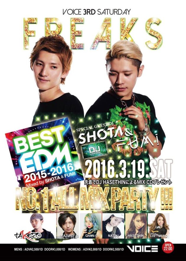 全国のフェスやクラブで大活躍!今大注目の2人【SHOTA&FUMI】がiTunesチャート2位を記録した、【EDM BEST MIX】をひっさげ、水戸Voiceに登場!!