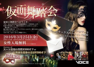 男性スーツ着用で¥500オフ or 仮面持参の方は¥500オフ