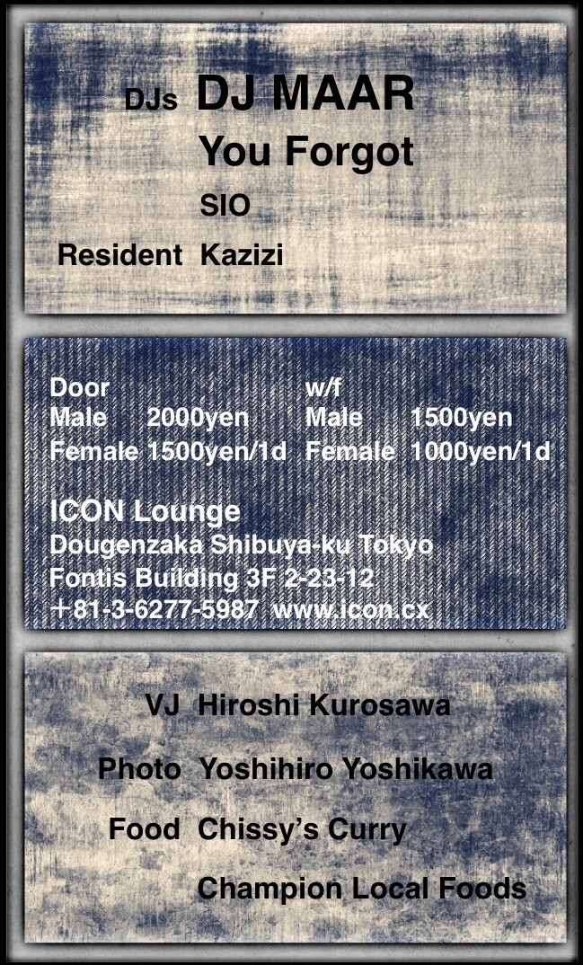 DJ以外のコンテンツも充実の内容で、VJにGLIESEではおなじみになった"Hiroshi Kurosawa"、フォトグラファーに説明不要の人気フォトグラファー"Yoshihiro Yoshikawa"、フードに前回に引き続き渋谷クラブ界隈でブッキングのたえない"Chissy's Curry"、タコスとハンバーグが絶品の"Champion Local Foods"。