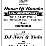 原宿と千駄ヶ谷の中間に位置する、老舗であり、音を知る遊び人が全国より集う音空間、Bonoboにて不定期開催中のパーティー、House Of Bonoboが、4月7日(木)に一周年パーティーを開催します。