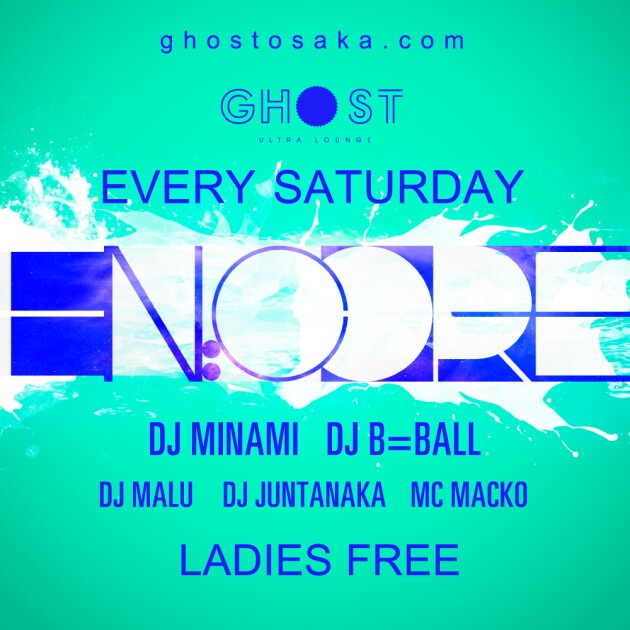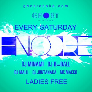 毎週土曜日のGHOSTは大阪のクラブシーンを常に最先端へ引っ張って来たDJ陣を揃え、HIP HOPをベースに"今一番クラブで盛り上がる曲"をオープンフォーマットスタイルでお届けする『EN:CORE』!HIP HOP好きのアナタはもちろん、海外のクラブシーンを追いかけるSoundCloud中毒のアナタもきっと満足できる、唯一無二の内容でアメ村の土曜日の夜を彩ります。