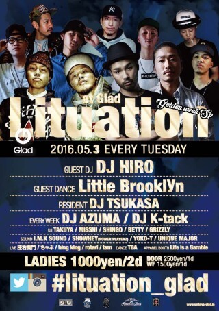 毎週火曜日は是非Lituation、渋谷、Gladお越しください!