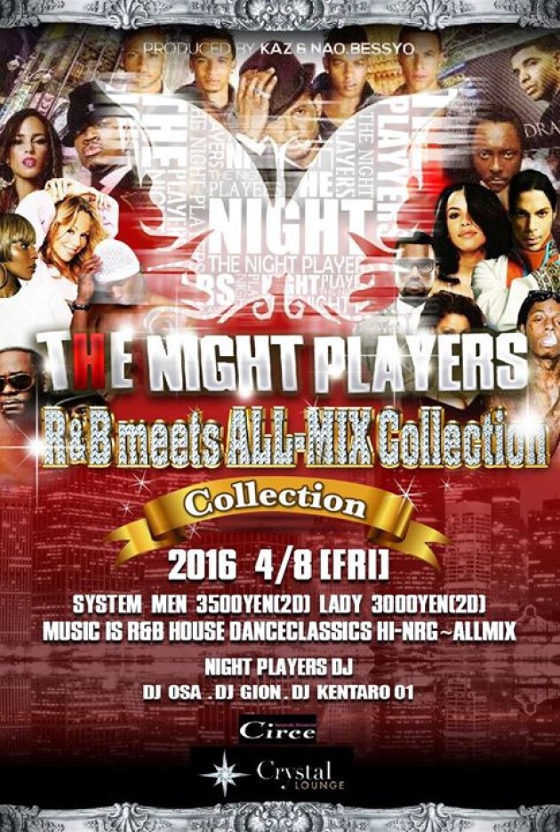 2016年4月8日(金) 第81回 THE NIGHT PLAYERS『R&B meets ALL-MIX Collection』を青山Crystal LOUNGE(クリスタルラウンジ)にて開催いたします。