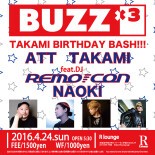 TOKYOが産んだ独自のAFTER HOURSシーン。今もなお早朝から刺激を求め、まだまだ踊り足りないフリーク達が渋谷R LOUNGEへと足を運んでいる。そんな重要なシーンに無くてはならないDJ、ATTとTAKAMIが繰り出すのがアフターアワーズの決定版「BUZZ×3」!!!!!!