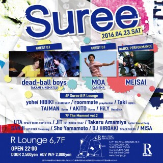 UTA(SPECE BUDS/SPECTRA)率いる気鋭のDJ陣を加え、2フロア共に熱気あふれるSuree流パーティそのままパックしてお届け!
