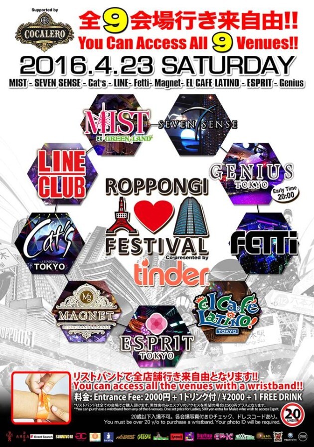20歳以下入場不可。各会場写真付きIDチェック、ドレスコードあり。