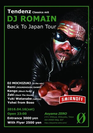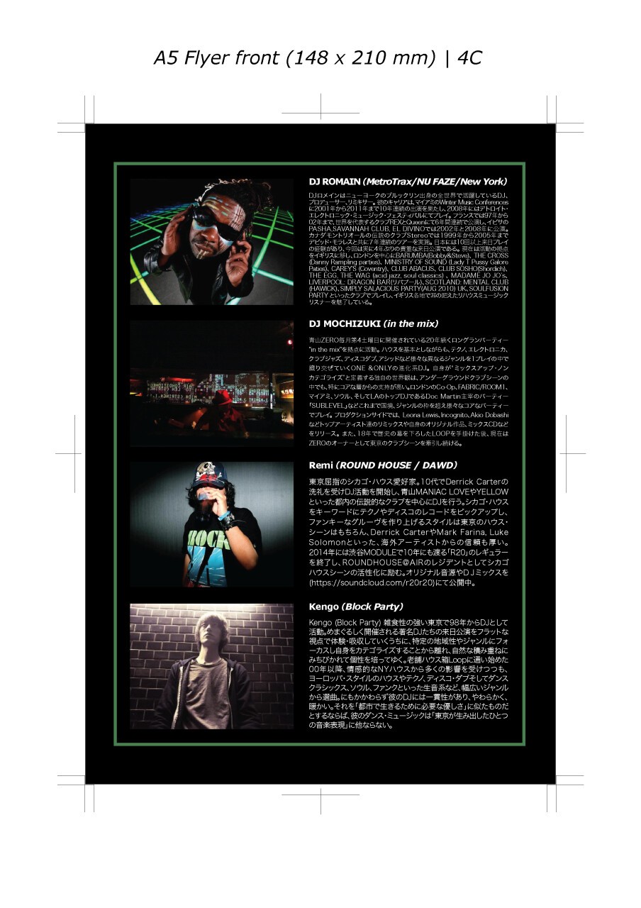 For the seventh party, guest DJ is New York Deep House's Prince : DJ Romain (NU FAZE Records / Metro Trax Records / New York) + Main DJs from popular parties all over Tokyo, such as DJ MOCHIZUKI (in the mix), Remi (ROUND HOUSE / DAWD), Kengo (Block Party), Zaki (Deck The House), Yuki Watanabe (Saltica), Yohei From Boso (House)