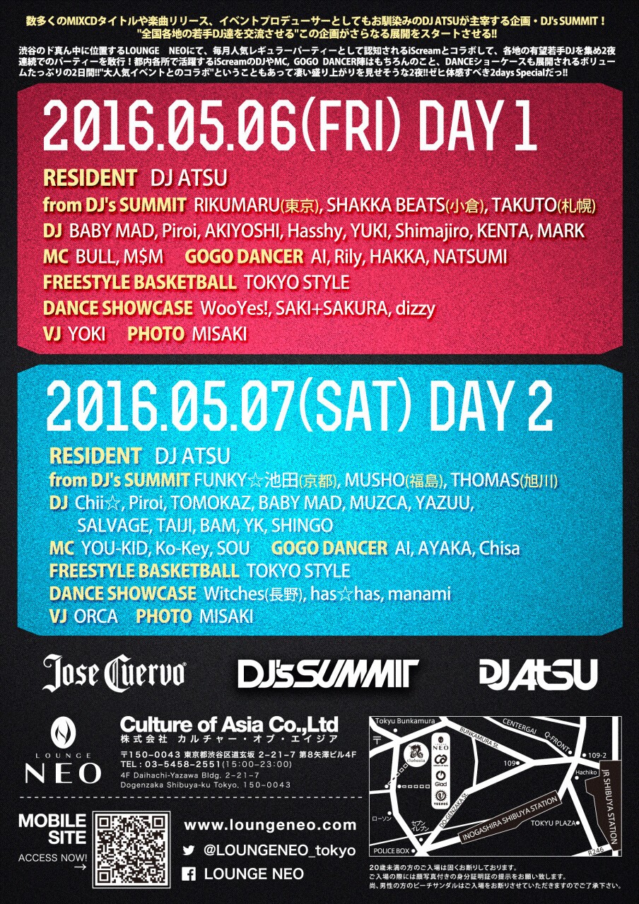 数多くのMIXCDタイトルや楽曲リリース、イベントプロデューサーとしてもお馴染みのDJ ATSUが主宰する企画・DJ's SUMMIT!"全国各地の若手DJ達を交流させる"この企画がさらなる展開をスタートさせる!!