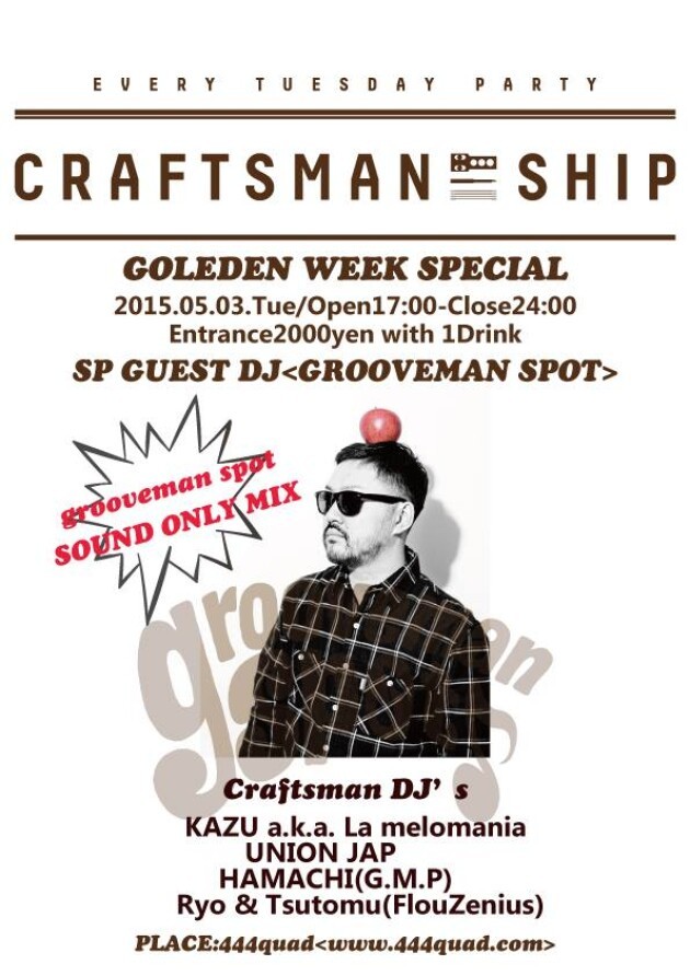 444quadが独断と偏見で是非皆さまに聴いてほしいDJをピックアップし、週替わりで変わる職人(DJ)の平日火曜日の良質音楽会。