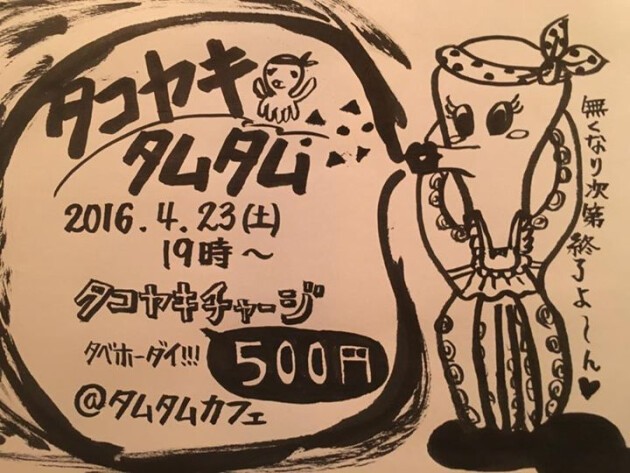 たこ焼きチャージ500円でなんと食べ放題!無くなり次第終了です。1Drinkはオーダーしてね◎
