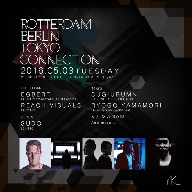 ARCのゴールデンウィークにスペシャルなテクノ・パーティーが開催オランダ/ロッテルダム出身の若き才能エネルギッシュなテクノサウンドでフロアーをぐいぐいと引っ張り上げ昇天させるライブアクトEGBERTそしてSVEN VATH率いるCOCOONの専属VJとして世界中のフェスやパーティー活躍し、常に最先端の映像で常にパーティーを最高の状態に演出するVJREACH VISUALSが久々の来日を果たす