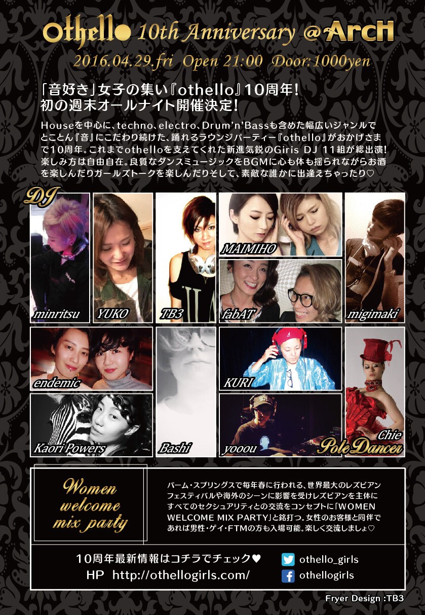The fabulous 10th Anniversary of WOMEN WELCOME LGBT MIX PARTY - othello - kicks off the Tokyo Rainbow Week on the very first night of Golden Week Holiday!