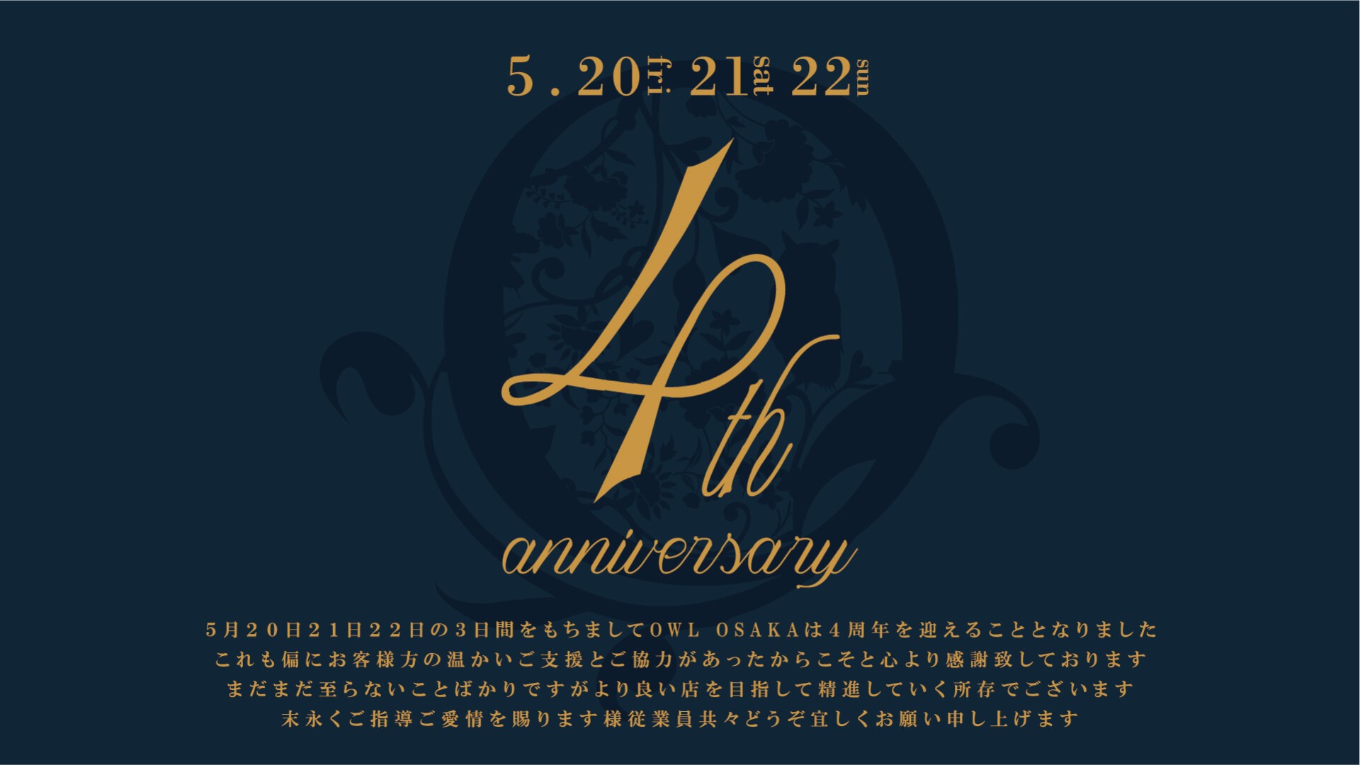 5月20日21日22日の3日間をもちましてOWL OSAKAは4周年を迎えることとなりました