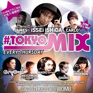 毎週木曜日の帯に開催している #TOKYOMIX が祝前日に SPECIAL 版としての開催!今回、スペシャルゲストに俳優でもありアーティストとしても活動している iSSEi iSHiDA が登場!また、ゲストには東京都内を中心にレジデントとして週に40時間以上の play をこなしつつも ageHa、WOMB、ELE TOKYO や西武ドーム等の野外フェスでのプレイ、そして ULTRA JAPAN Official After Party や MINISTRY OF SOUND の Official Party 等でもプレイしている JAMES と毎年 200GIG を超える現場でのプレイをこなし、初心者から上級者までが楽しめるスタイルで幅広い層のファンを獲得している CARLO が登場!今やアジア全土に止まらず世界中に大旋風を巻き起こしてる EDM やバウンス系 EDM のチャートや誰もが知ってるあの曲が一晩で全て楽しめちゃうパーティーに乞うご期待!!!