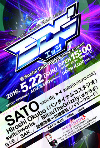 新感覚! ゲーム音楽のクラブイベント「EDG」(エッジ/Electronic Dance Game music )が、5月22日(日)、渋谷のクラブSocial Club Tokyoにて開催決定!!