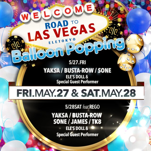 黄金の街ラスベガスをコンセプトELE TOKYOが様々なショータイムと共に織り成す本場さながらの特別なラスベガスナイト。5月は大好評の"Balloon Popping"をテーマにした非日常の夜をお楽しみいただけます。
