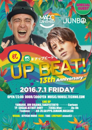 パーティーアニマルはもちろん、パーティーガールも集う本パーティー、UP BEAT!の原点回帰とも言えるこのタイミングに注目してほしい…そこに必ず歓喜のダンスミュージックがあり新たなミュージックジャーニーへとクラウドを誘う。