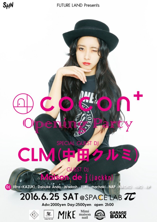SPECIAL GUESTには、モードとストリート、どちらもこなすファッションアイコンとして活躍中のCLM(中田クルミ)が登場!!オーディエンスを引き込む男勝りな選曲で、cocon+ opening partyを盛り上げる!