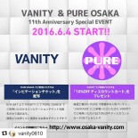 宗右門町のクラブ "PURE"の11周年とVANITYの11周年を記念して、お得なコラボ企画開催決定!! 6/4(土) 毎週土曜日にPUREで開催中の人気パーティー "JACKASS" にご来場いただいた方にVANITYでご利用いただける【10%OFFディスカウントカード】をプレゼント!! 6/7(火)~6/13(月)のPURE周年ウィークに合わせ、期間中各パーティーでも【10%OFFディスカウントカード】をキャッシャーにて配布いたします!! 6/10(金)に開催されるVANITYの周年SALEでもご利用いただけるお得なディスカウントカードです!! PUREに遊びに行って是非GETしてくださいね!!