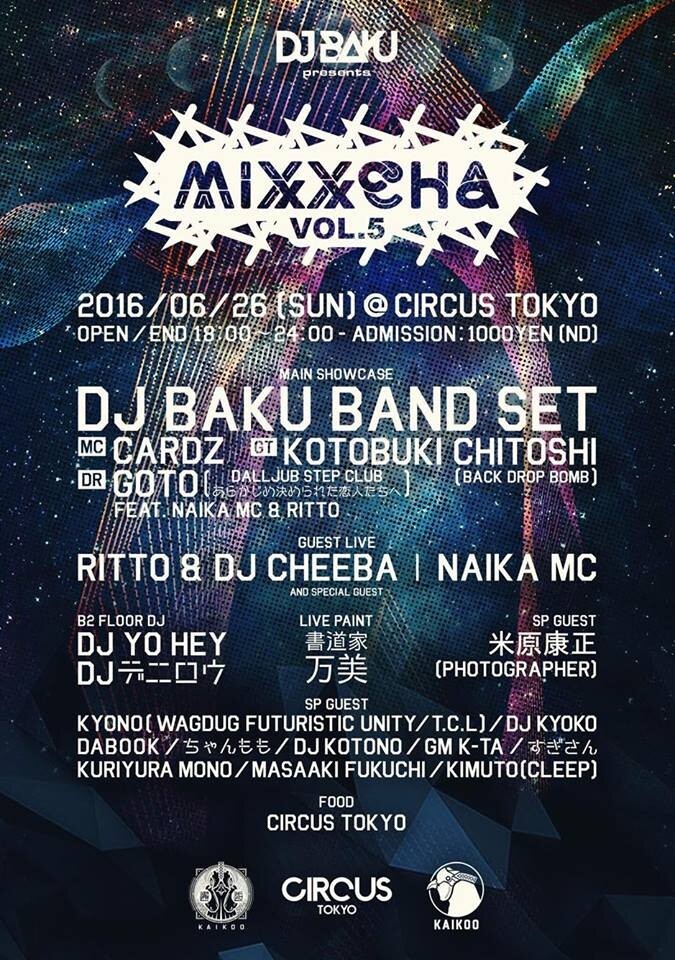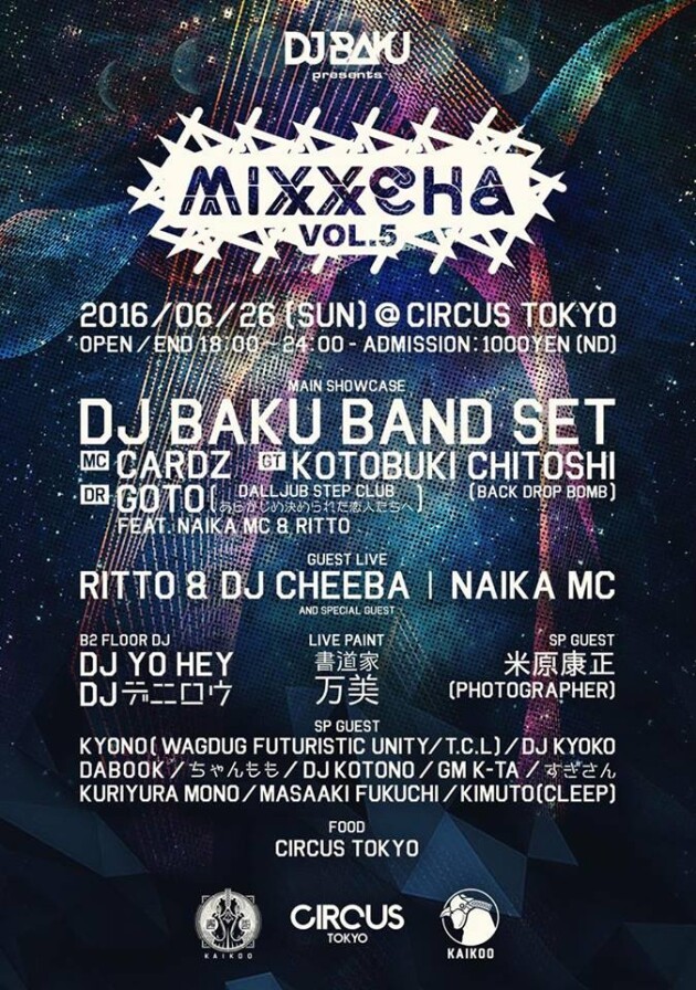 KAIKOO開催への幕開け!”DJ BAKU”自らオーガナイズをするパーティー「MIXXCHA」がいよいよ復活!様々な分野の壁を越えて多彩な出演者と共に帰ってくる!