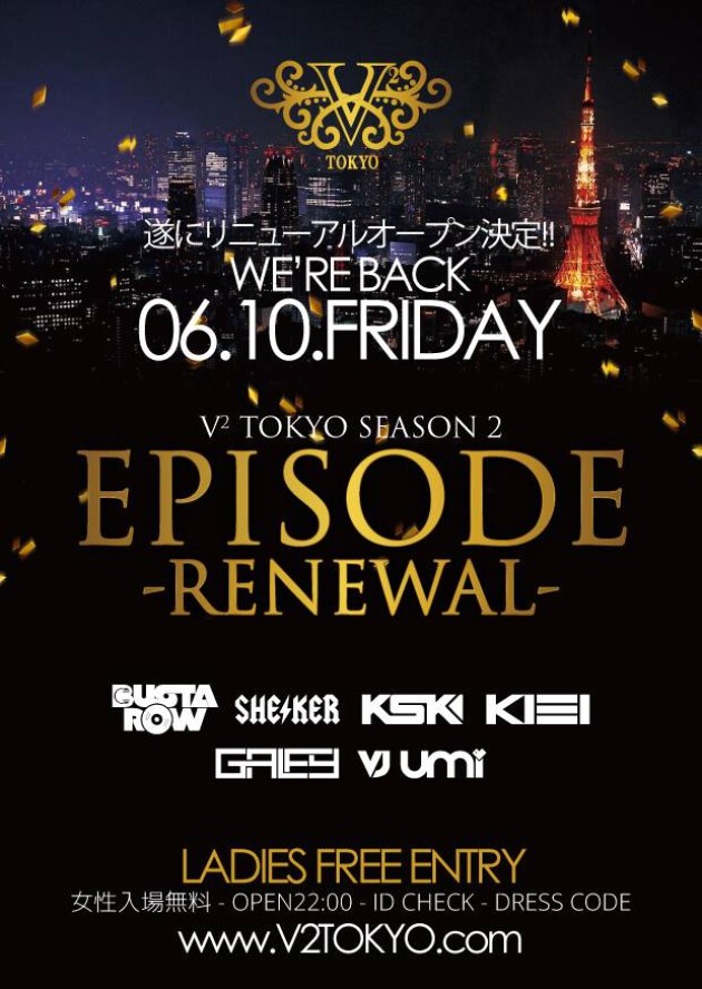世界に誇る日本のNightClub、V² TOKYOが6月10日(金)よりリニューアルオープン!