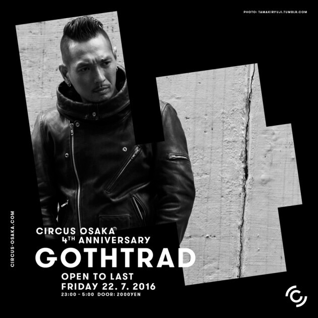 CIRCUS 4TH ANNIVERSARY! 近年エレクトロニック・ミュージックの世界で最も尊敬を集め世界中からオファーが尽きない孤高のアーティストGOTH-TRADがCIRCUS OSAKAに登場!世界中を飛び回り、獲得してきた最新のサウンドと世界を見た男が目指す「新世界」OPEN TO LASTが遂に実現する。 GUEST: GOTH-TRAD -open to last- OPEN 23:00 DOOR: 2000 ※別途1d