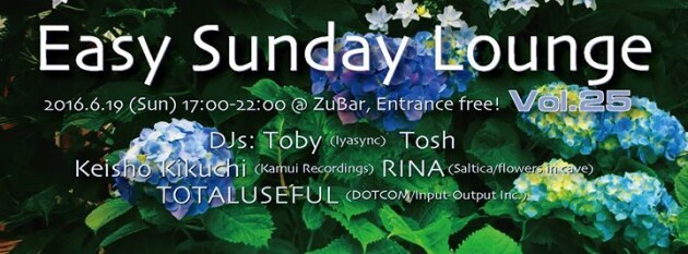 Every 3nd Sunday evening at Zu bar in Ebisu, Toby aka Techno ambassador & Keisho from Kamui recordings throw a Easy Sunday Lounge for you.