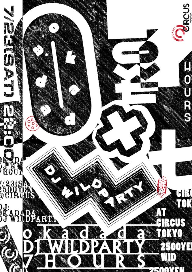 大阪在住のDJ/trackmakerであり、ジャンルを越えたアーティストへのリミックスワーク等、多岐に渡る活動で活躍するokadada、エレクトロ、ヒップホップ、アイドルポップ、アニソン、ゲーム音楽、ブレイクコア、歌謡まで貪り尽くすウルトラ・ボーダーレスなDJで人気を博すDJ WILDPARTYの2者による強力な7時間!!!!