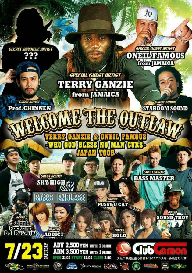 【WELCOME THE OUTLAW】7/23(土)☆TERRY GANZIE & ONEIL FAMOUSは来日キャンセルとなりましたがイベントは開催致します。SECRET JAPANESE ARTISTにPETER MANが登場☆☆さらにGUEST ARTISTにProf.CHINNEN、GUEST SOUNDにSTARDOM SOUND、BASS MASTER、SKY HIGHが出演★★