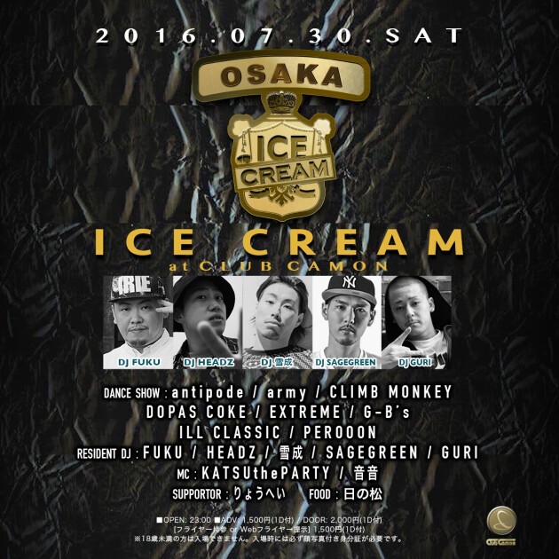 【ICE CREAM】7/30(土)☆HIP HOP & FIRST CLASS MUSIC PARTY『ICE CREAM』☆☆CLUB CAMONのLINE公式アカウント登録で割引特典あり★★