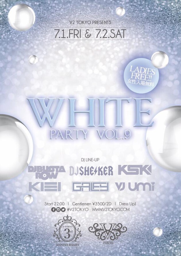 ☆☆V2 TOKYO 3rd ANNIVERSARY期間中の7/1(金)2(土)は『WHITE PARTY Vol.9』を開催☆☆
