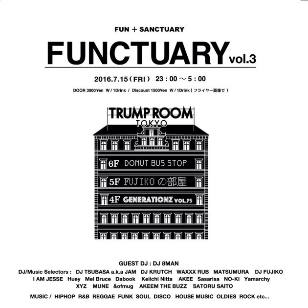 “GENERATIONZ”, incredibly successful events held at both legendary night club Velours and Le Baron de Paris, is teaming up with DJ FUJIKO and "DONUT BUS STOP" crew for a night of black music titled "FUNCTUARY"!