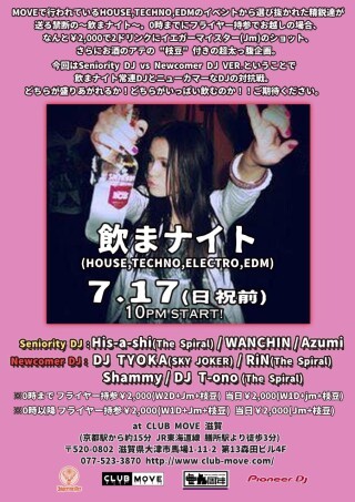 MOVEで行われているHOUSE,TECHNO,EDMのイベントから選び抜かれた精鋭達が送る禁断の~飲まナイト~。