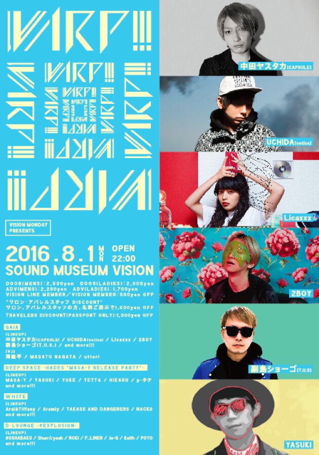 中田ヤスタカ(CAPSULE) / UCHIDA(vetica) / Licaxxx / 2BOY / 副島ショーゴ(T.U.S.) / AYAMI / U-TA and more!!!