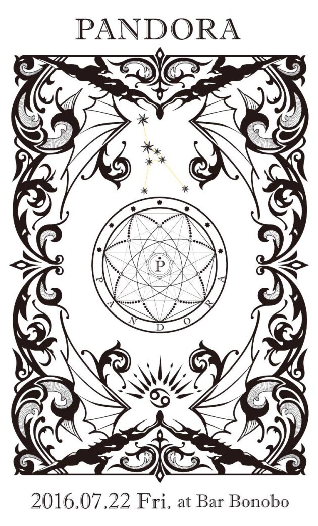 現行の日本アングラシーンよりゲストを2名ずつ呼び、融合反応を楽しむ事をコンセプトにbar Bonoboにて定期開催中のテクノ・パーティー PANDORA