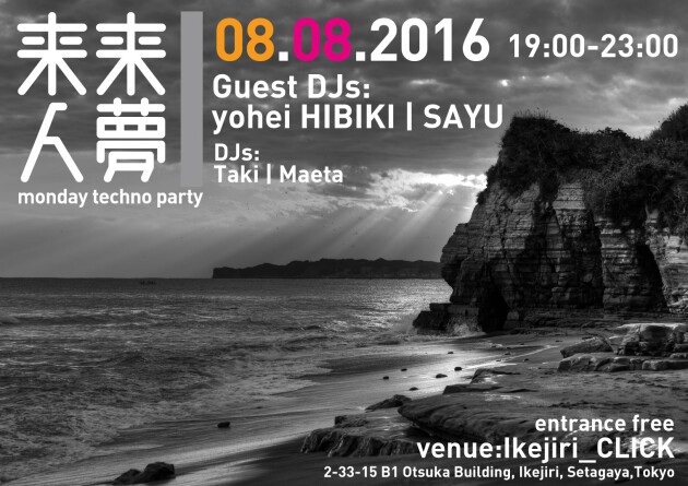 月頭の月曜からテクノやハウスなどを聴きながら 一ヶ月の英気を養うコンセプトのイベント! Guest DJとしてテクノパーティー"Technoship" クルーのyohei HIBIKIさん,SAYUさん登場!!!